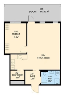 2-roms leilighet på 52 kvm i 2. etasje (H0202)