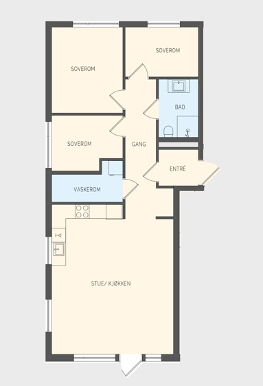 4-roms leilighet i 1. etasje på 80 kvm BRA. Klar til innflytting.