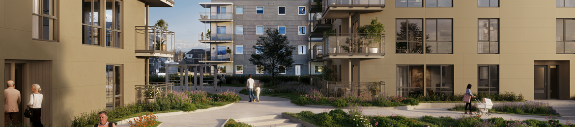 Rundt byggene vil det bli parkmessige uteområder som skaper møteplasser og innbyr til avslapping. Det blir egen lekeplass for barna.