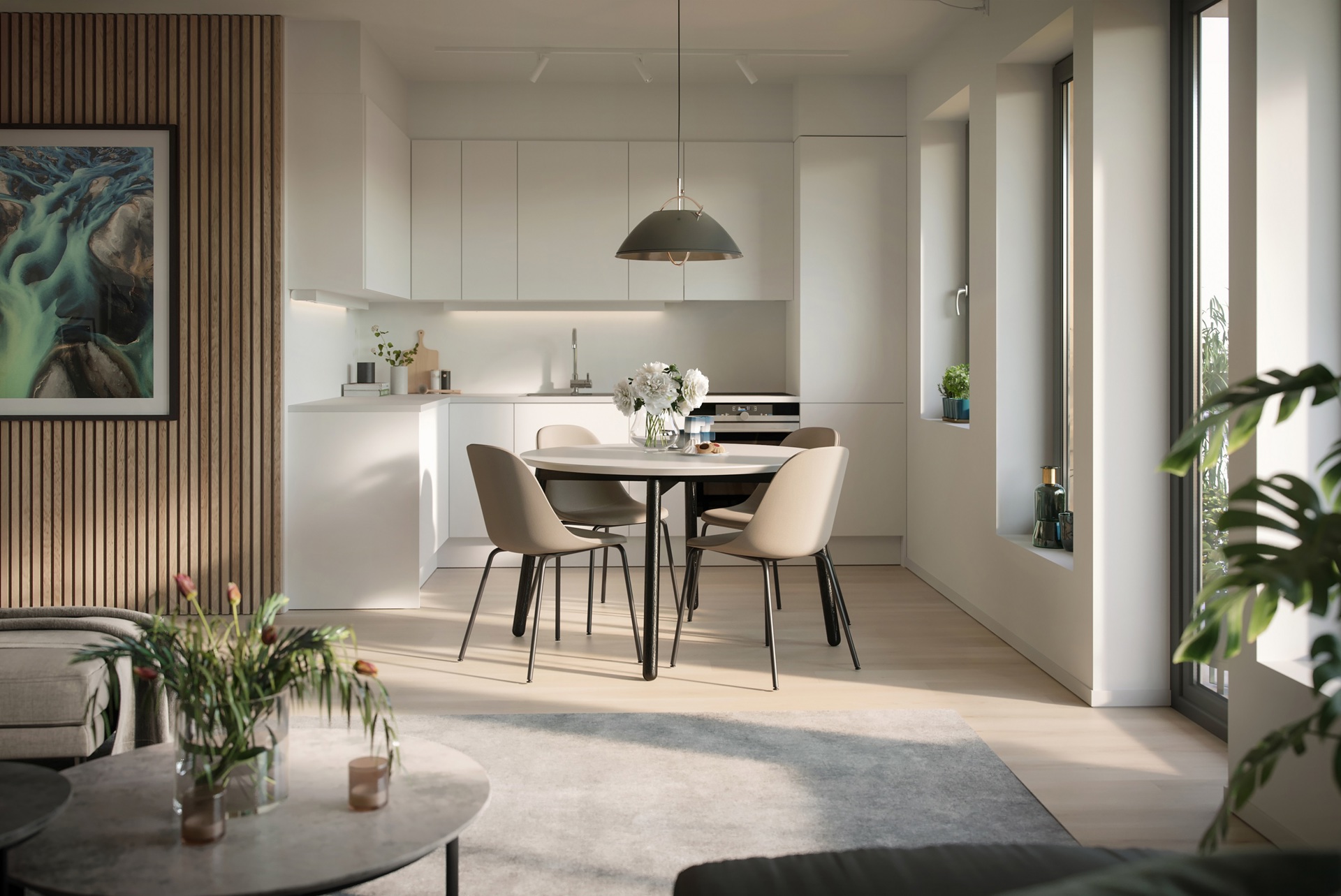 De 51 leilighetene har en god standard, og vil variere i størrelse fra 55 m2 til de største på 85 m2. Hver leilighet har åpen planløsning og hver sin balkong ut i det fri hvor man kan nye privatliv og det norske klimaet. Uten for hoveddøren inn til leiligheten din har du mulighet til å plassere et lite cafébord så du kan sitte privat og nyte vinterhagen.