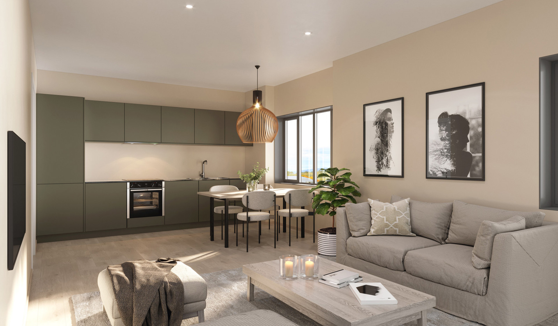 Den nye tre etasjers lavblokken på Tyristrand rommer til sammen 13 to- og treroms leiligheter i størrelsen 47 - 76 kvm BRA. Leilighetene har en åpen stue- og kjøkkenløsning, ett til to soverom, balkong eller markterrasse og vannbåren gulvvarme. Bygget har heis og parkering i garasje.